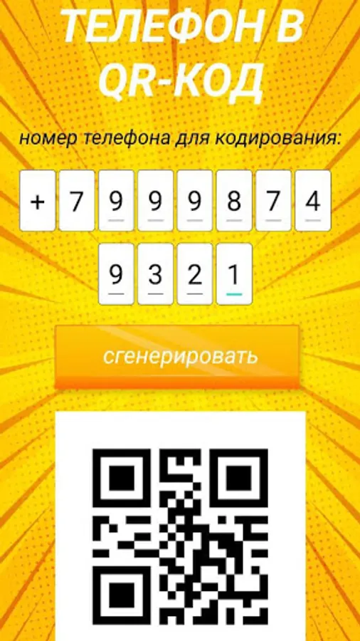 The application can make a QR code from a phone number that can be easily and quickly scanned