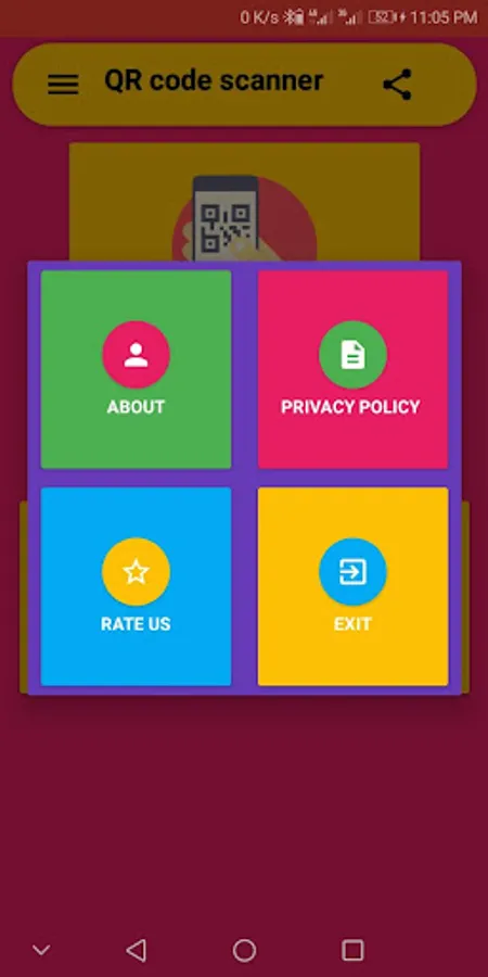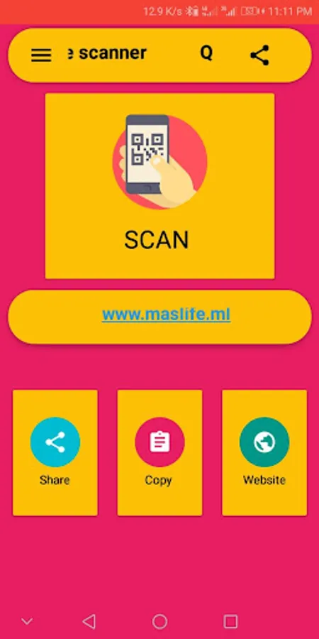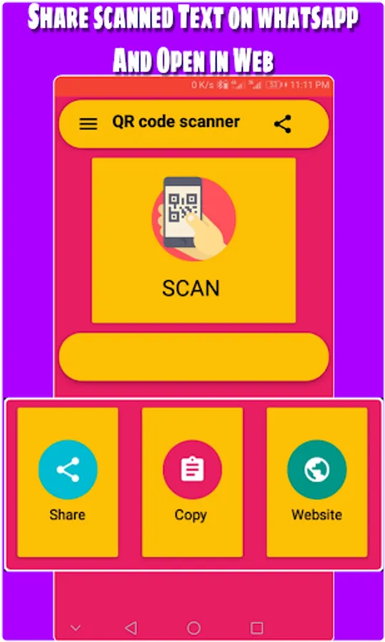 QRcode Scanner can Open links, copy scanned text, share on whatsapp,