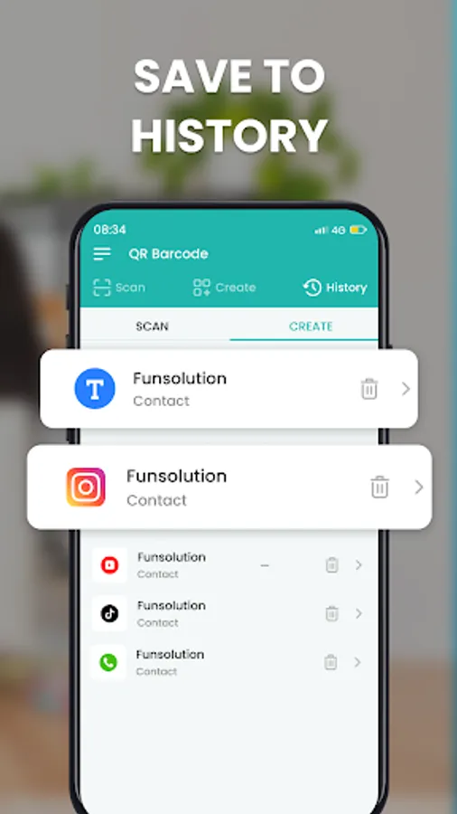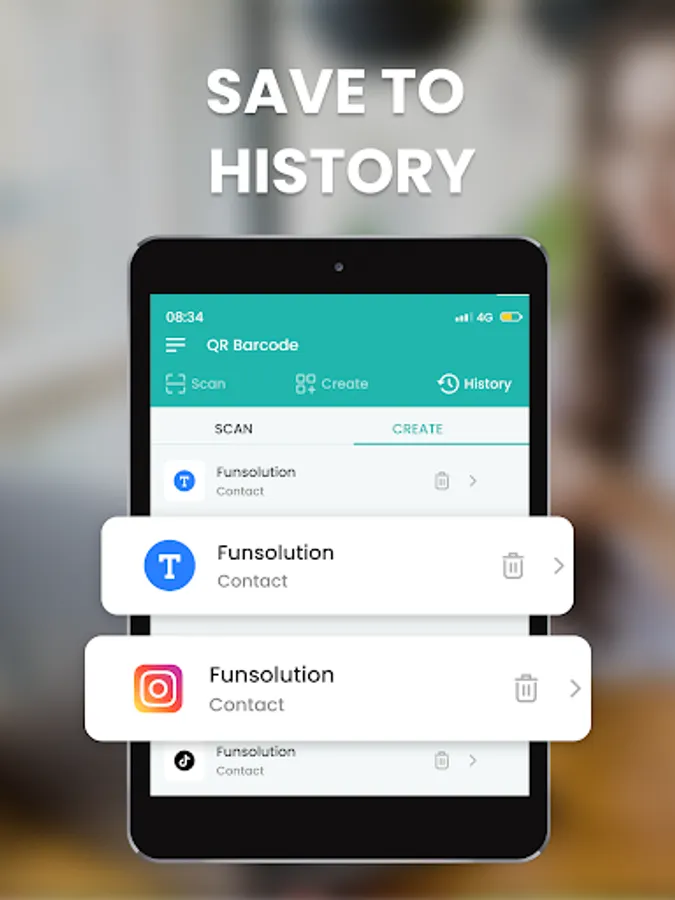 All scanned & created QR-code records are permanently saved on QR code scan & fast Barcode scanner app. It is easy to manage the data list and clear historical access locations, QR-code links.