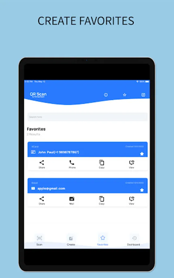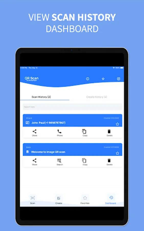Use it to scan all the types of QR and barcodes. Scan and save the codes to come back to them anytime.