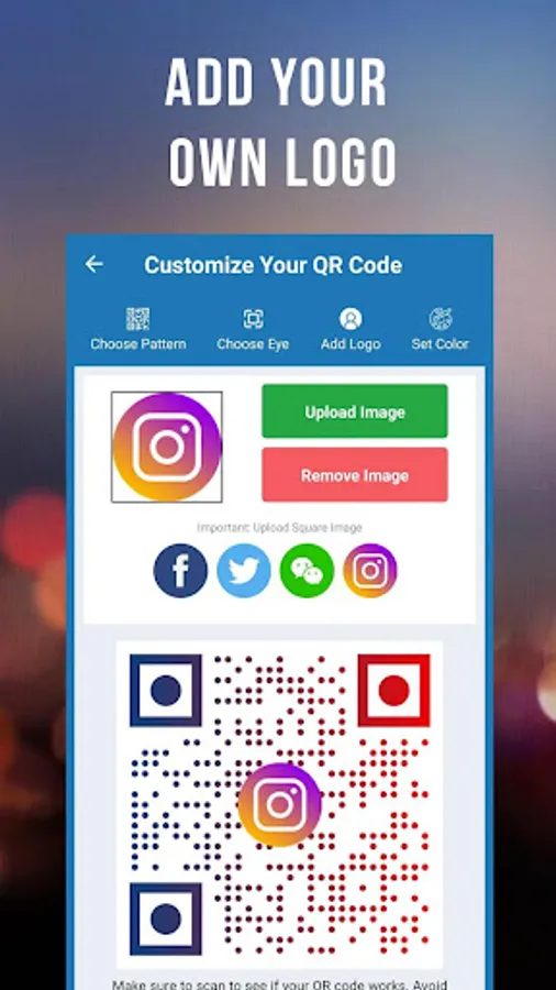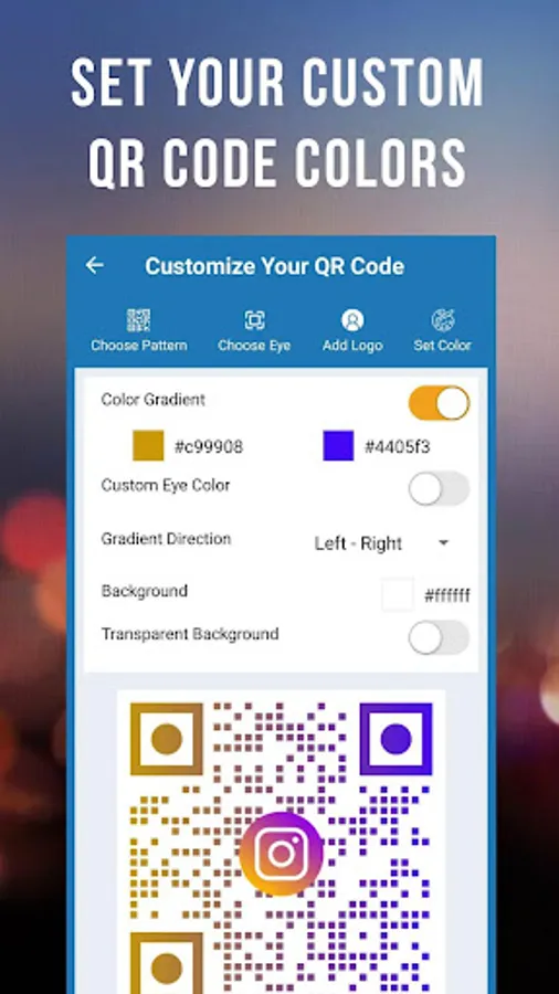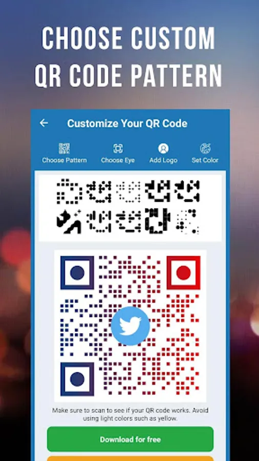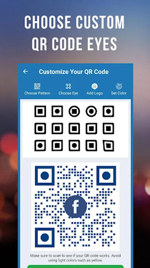 β Customize your QR code by setting the pattern and colors. You can even add a logo or image!