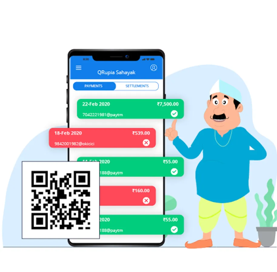 QRupia Sahayak is cloud based, very cost-effective digital payment acceptance and book keeping solution, based on BHIM UPI, for business of all sizes.