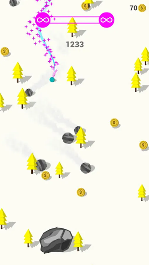 The gameplay is simple: tap to turn left or right, and hold to turn sharply to avoid obstacles like trees and stones. But don't let the simplicity fool you - the obstacles come fast and furious, and one wrong move could mean game over.