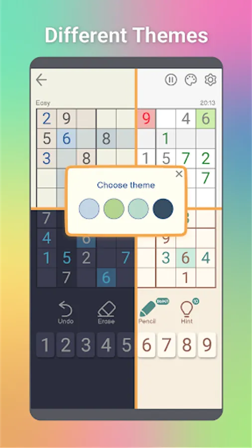 🌟 Beautiful Themes and Customization: Customize your gameplay experience with a variety of stunning themes and visual styles. From classic designs to vibrant colors, choose the look that suits your taste and mood. Immerse yourself in a visually pleasing environment as you tackle challenging Sudoku puzzles.