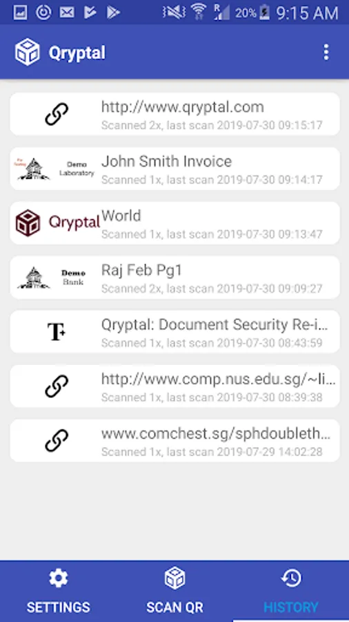 Qryptal lets you scan QR codes using your phone's camera. It is especially developed to work with QR Codes created on the Qryptal platform.