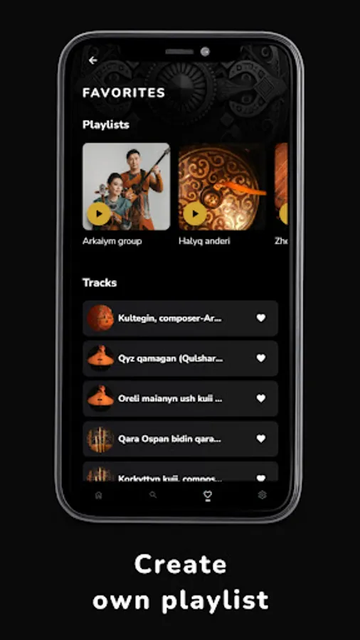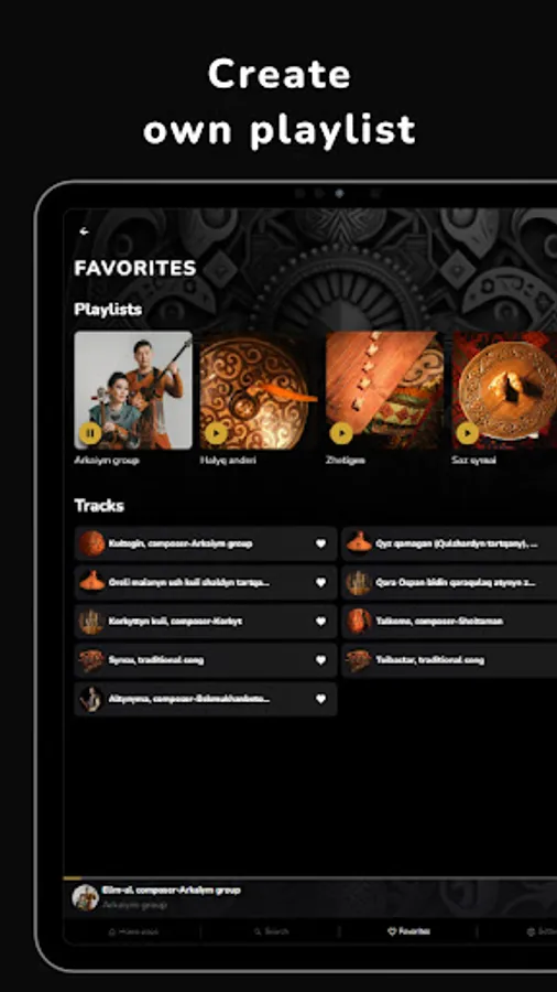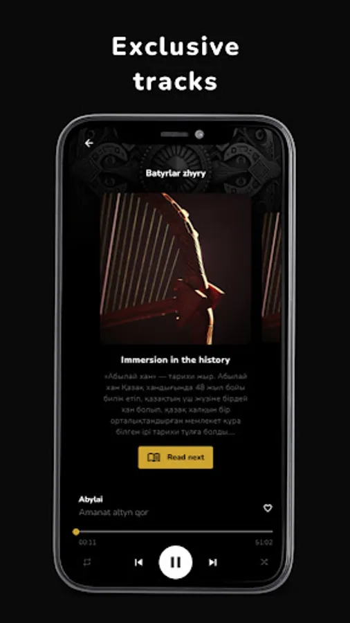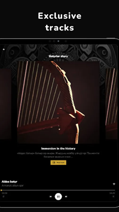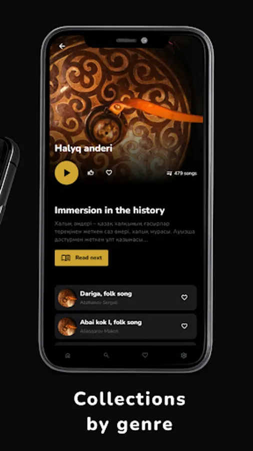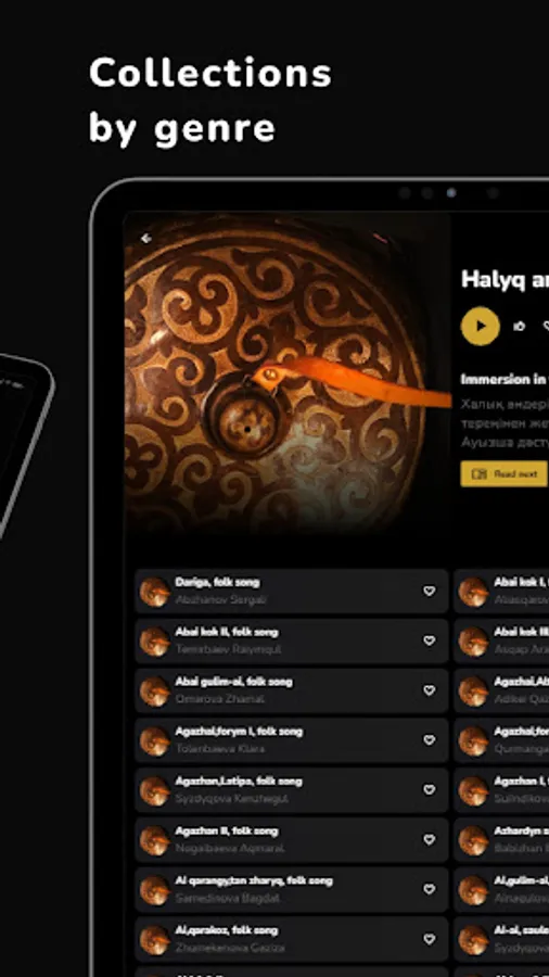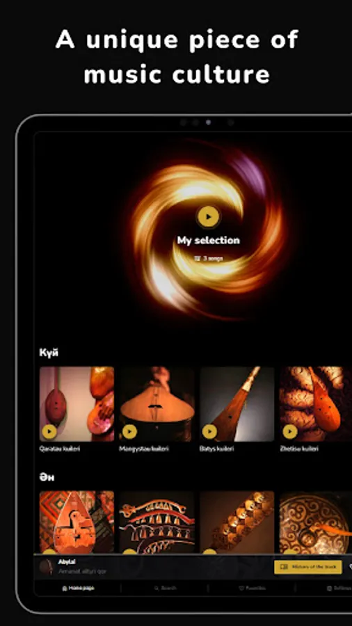 Service subscribers have access to different categories: traditional Kazakh music, fairy tales, legends, epics, stories about the history of Kazakh musical culture, as well as individual recommendations in various areas. To quickly find their favorite tracks, service users can create their own music collection.