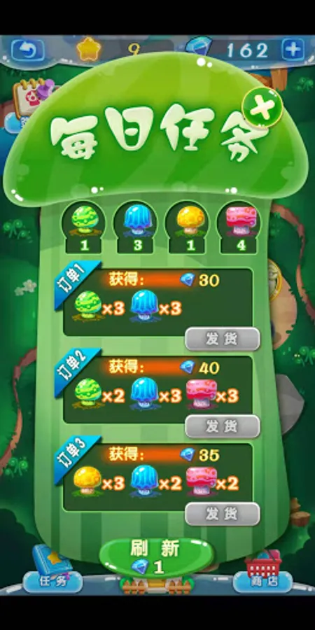 Crazy Spore: By synthesizing similar mushrooms of the same level, generate higher level mushrooms, and collect spores of the corresponding level to complete the mission objective.