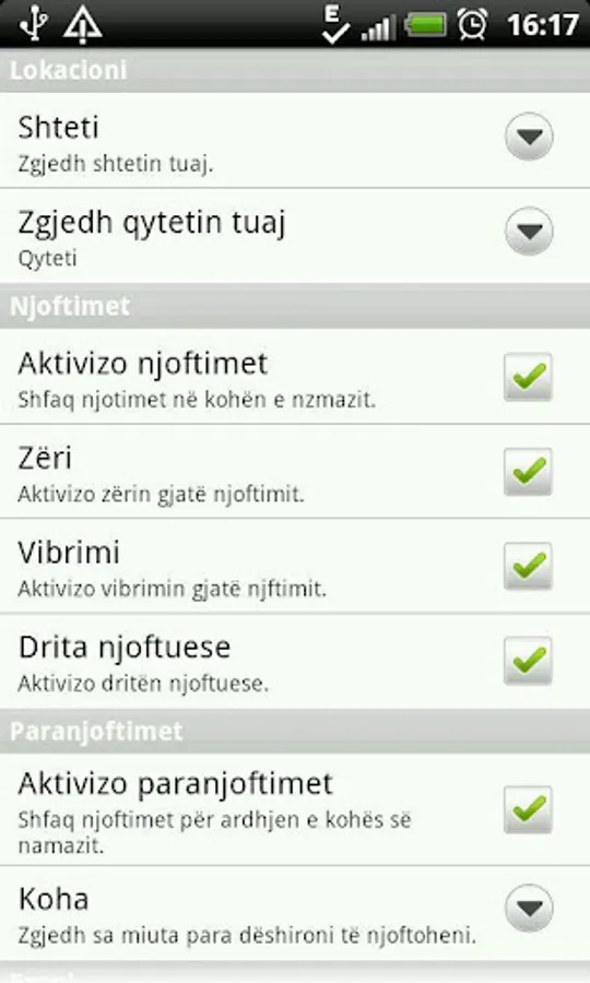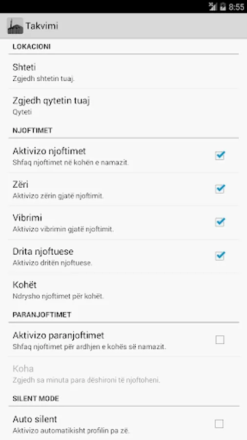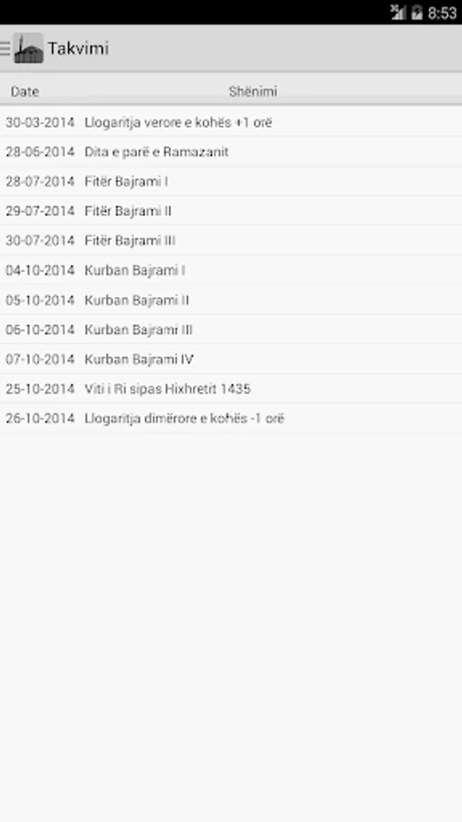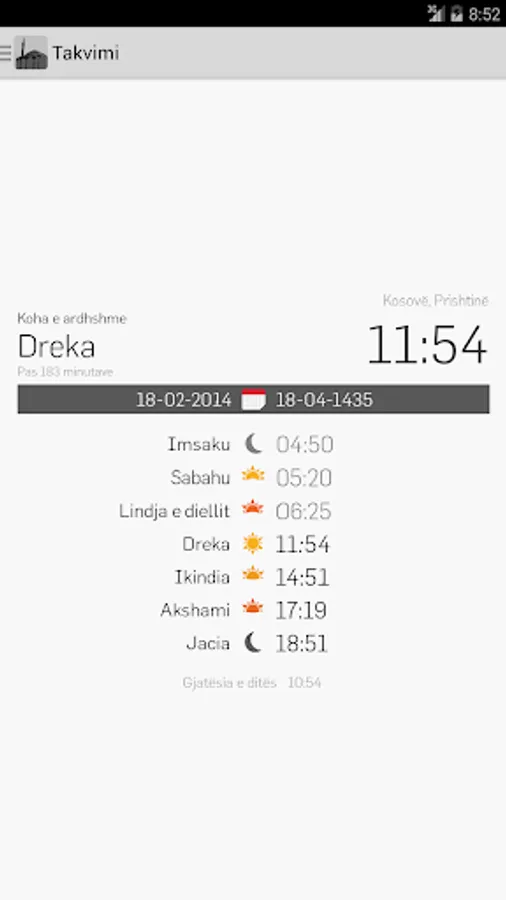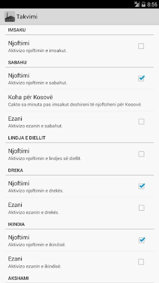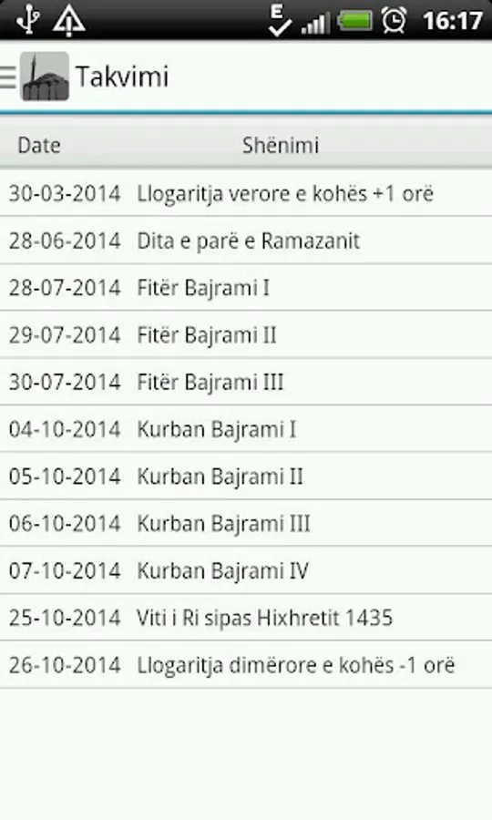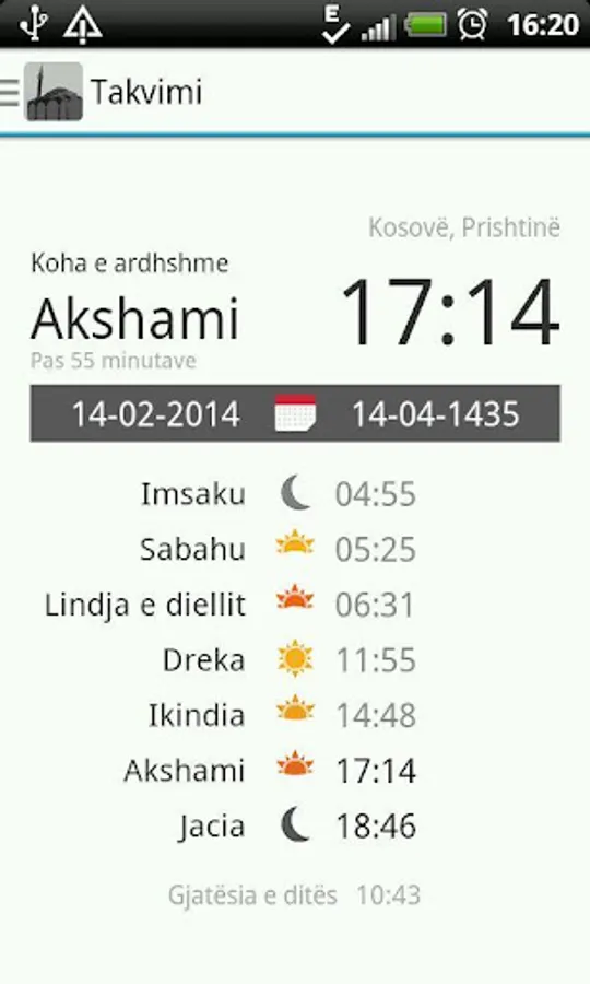 Takvimi për Kosovë, Shqipëri, Maqedoni dhe Mal të Zi (Ulqin).