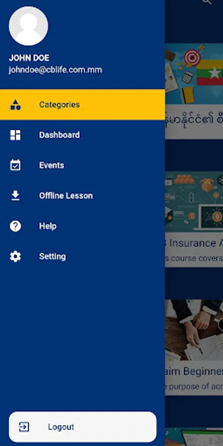 Online eLearning mobile application for CB Bank Life Insurance for online training of employees with study materials.