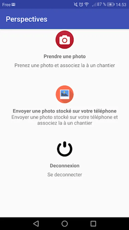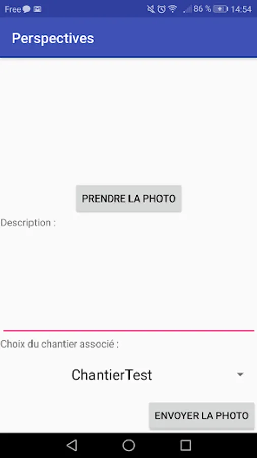 Application to take a photo and associate it with a work in progress. These photos will be accessible by the customer of these sites on the website prospects. Only employees have access to this application.