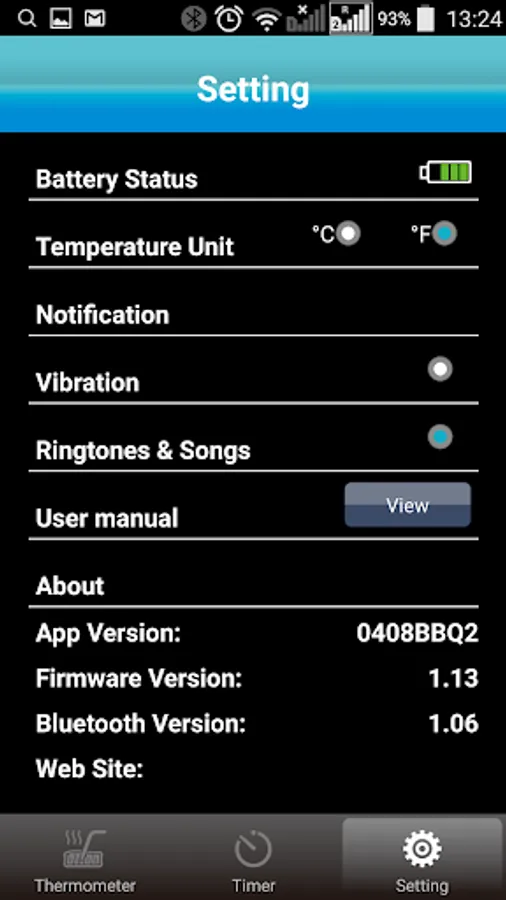 - The App can display temperature in ℃ or ℉ and is user selectable.