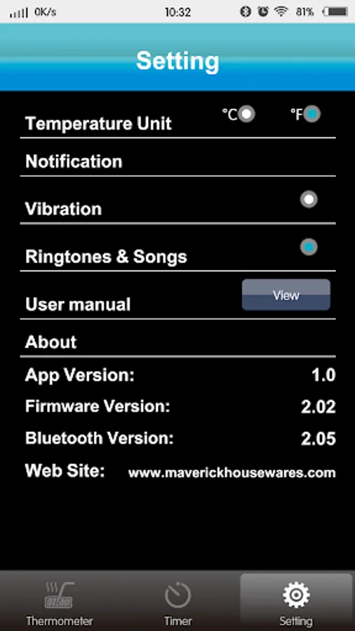 - The App can display temperature in ℃ or ℉ and is user selectable.