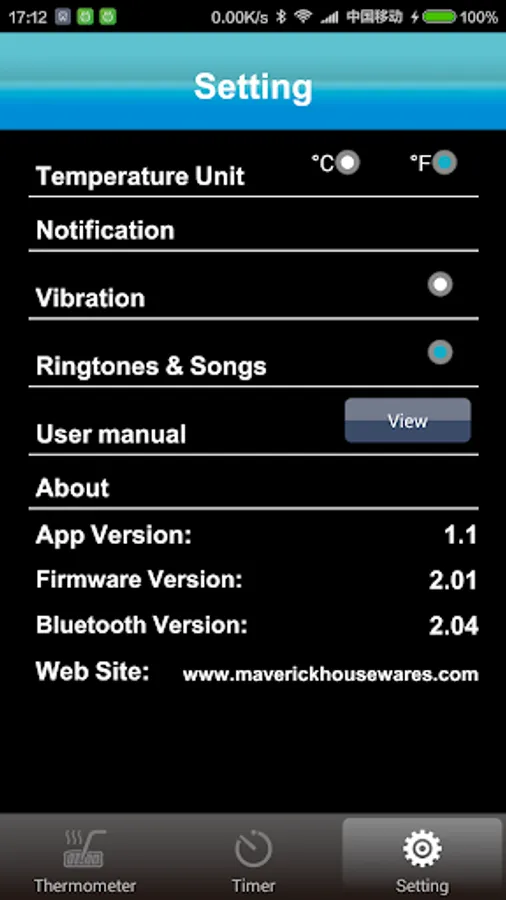 - The App can display temperature in ℃ or ℉ and is user selectable.