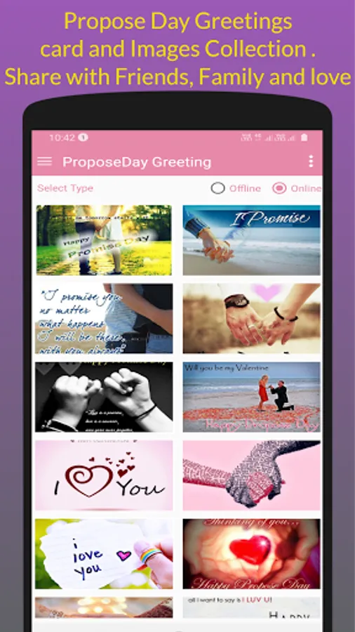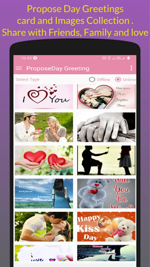 This a pplication Propose's Day Wallpaper has free Hd quality images for Propose's Day having various love symbol, romantic moments, Miss you and love quotes with the spirit and passion behind the strongest emotion. You will definitely love to have Propose's Day Wallpaper app on your device