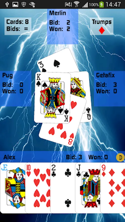 This app is an implementation of the Wizard card game developed by Ken Fisher of Wizard Cards International Inc., Toronto, Canada. You can play the single player offline against the AI or join in a live multiplayer game with other players around the globe.