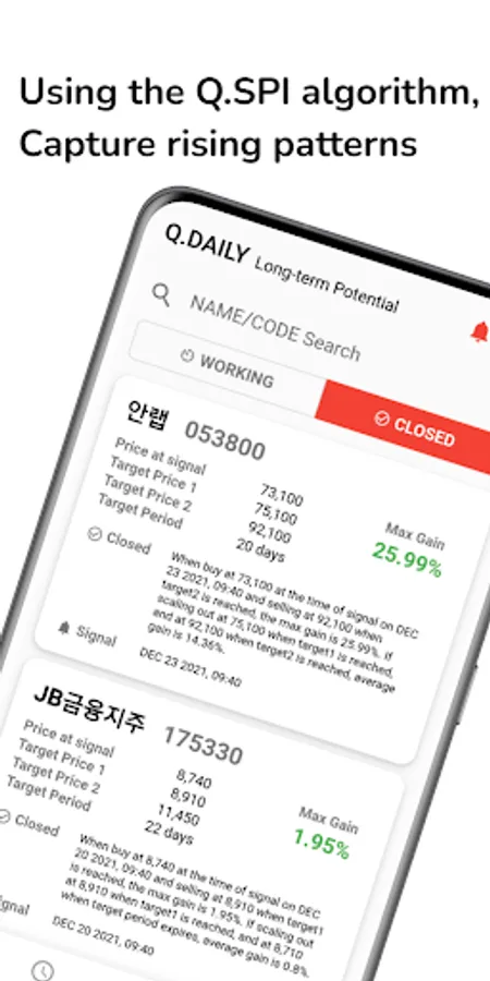 The QRS (Quantum Research System) algorithm is a deep learned algorithm learned by simulating the data of the Korean stock market for the past 15 years. We capture and inform you of rising and rising stocks faster than anyone else from a completely different perspective from the existing service.
