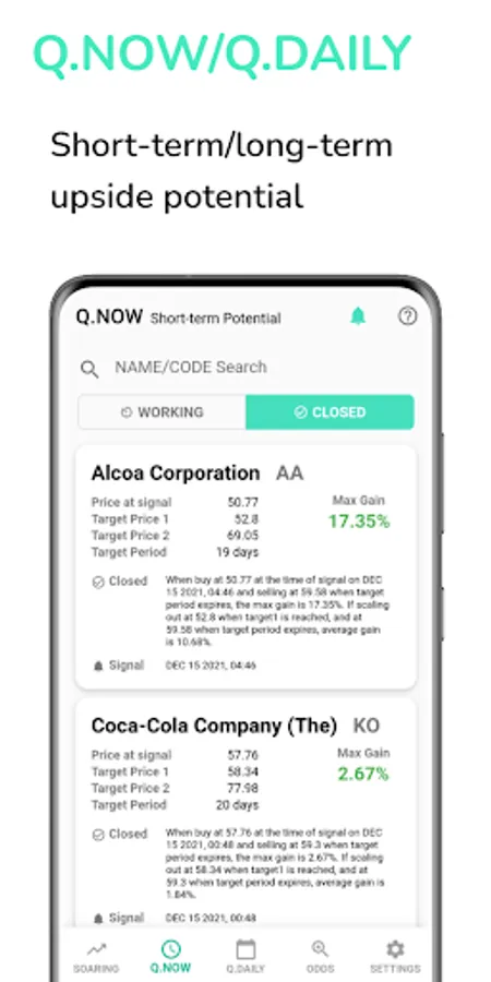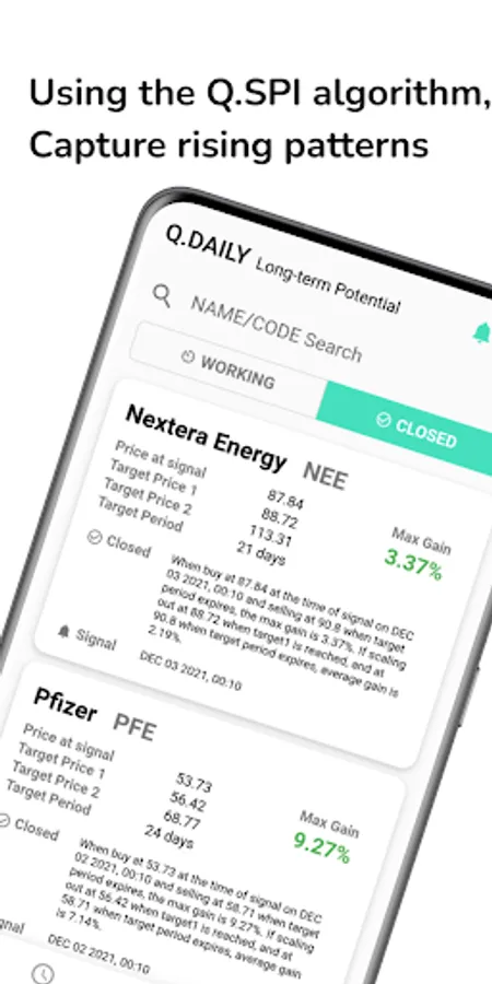 We provide a Q.DAILY service that aims to reach a target rate of return stably within D+15 trading days by investing in a 4-5 day swing technique, and a Q.NOW service that seeks profits within a few hours by quickly responding in real time with a rather high risk.