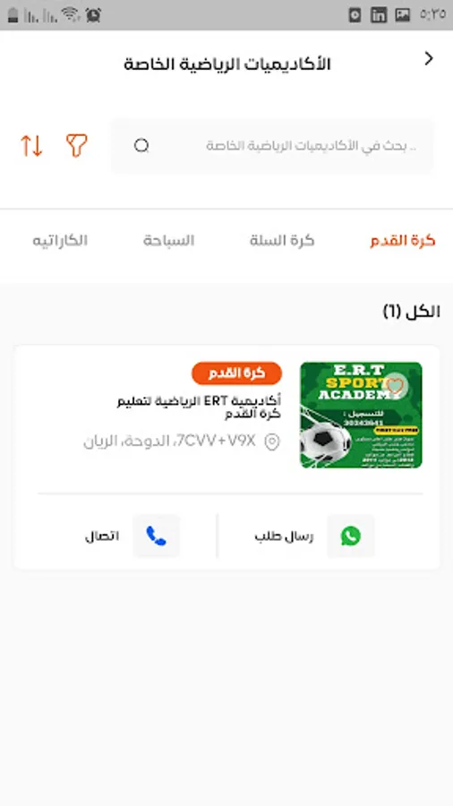 Qsport application is the first online platform in Qatar that brings together sports academies, health clubs, and men's and women's sports facilities in one window.