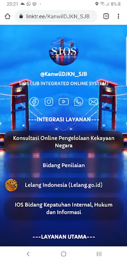 SIOS (SJB Integrated Online System) is an application for the DJKN Regional Office of South Sumatra, Jambi and Bangka Belitung which is used for productivity, providing easy information and services to service users.