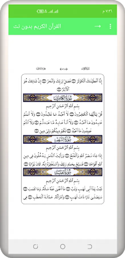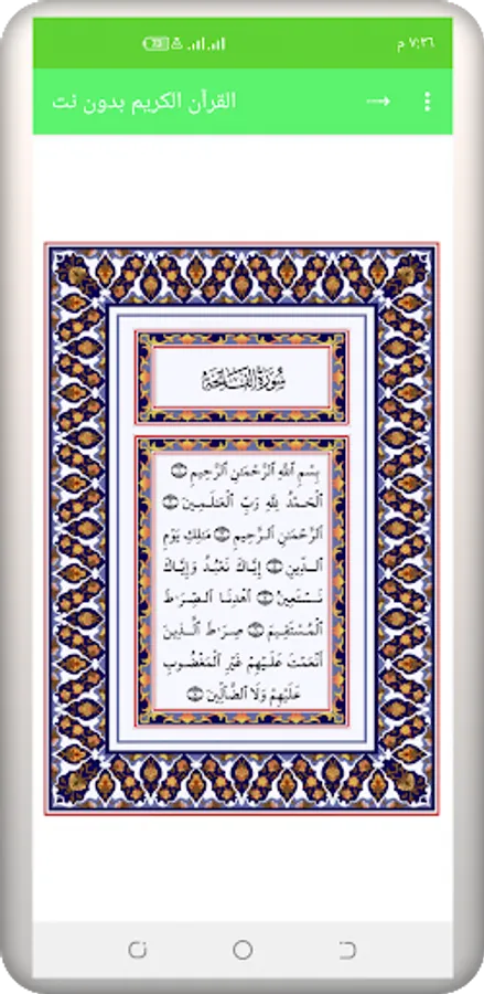 The application of the Noble Qur’an is written in clear handwriting with Warsh narration on the authority of Nafi 'Qur’an al-Madina.