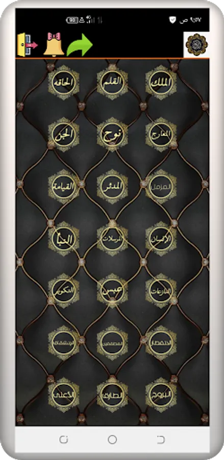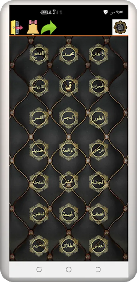 By pressing the (Next Surah) and (Previous Surah) button, you can listen to the previous surahs of the surah that you listen to, as well as the following surahs, and the program also shows you the duration of each surah so that you are aware of this.