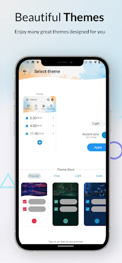 ClockBuddy is not only a free alarm clock but also an All in one application, where it combines all of the functionality you need into one simple, beautiful package. They include Alarm Clock, Timer, Stopwatch, WorldClock, Bedside Clock with many beautiful themes and widgets.