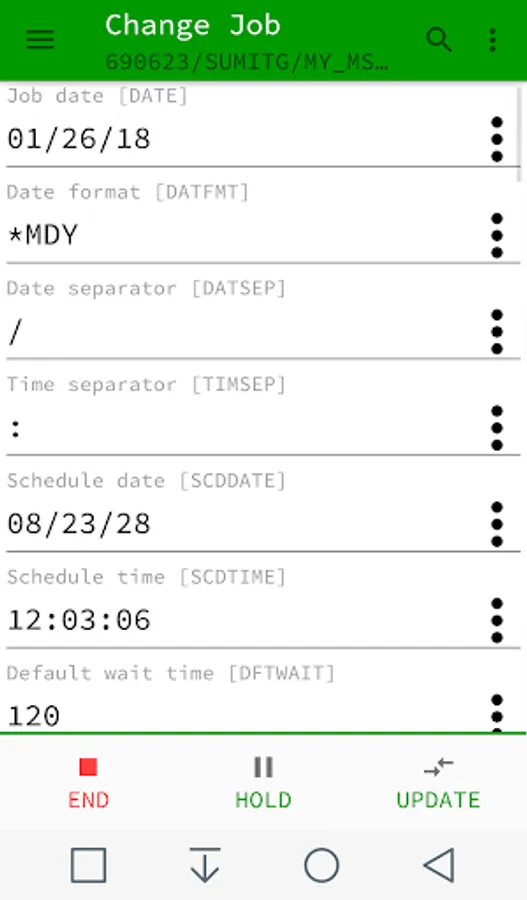 g. Hold job (Hold spooled files *YES or *NO)