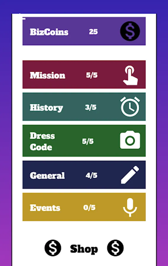 You can sign into your Facebook account and take the simple and fast quiz. There are five separate categories with 5 unique game modes. Each correct answer earns you two BizCoins which you can use to buy items in the in-game shop! After completing all sections, you can share your score to your Facebook account!