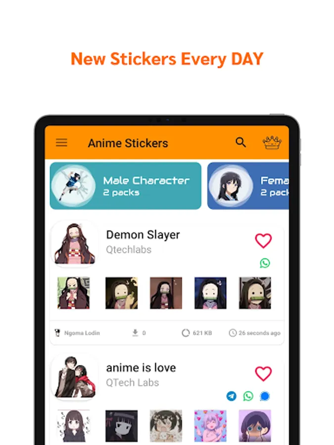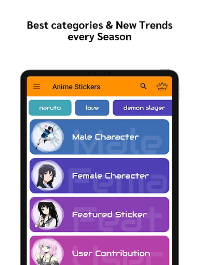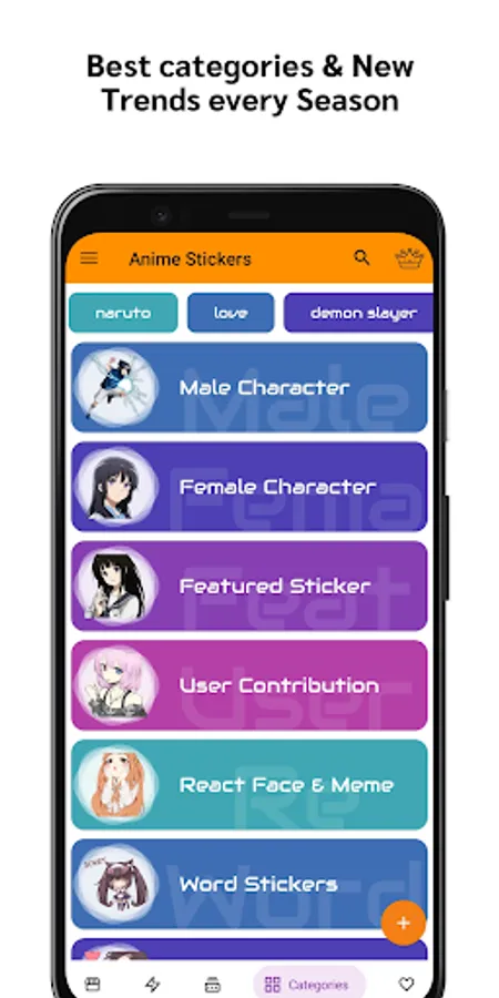 This amazing Anime stickers for WhatsApp application have many more amazing categories up to date every season anime ( Airing ) stickers for WhatsApp like a Animated Stickers,Meme Reaction stickers, Male anime stickers, Female anime stickers,