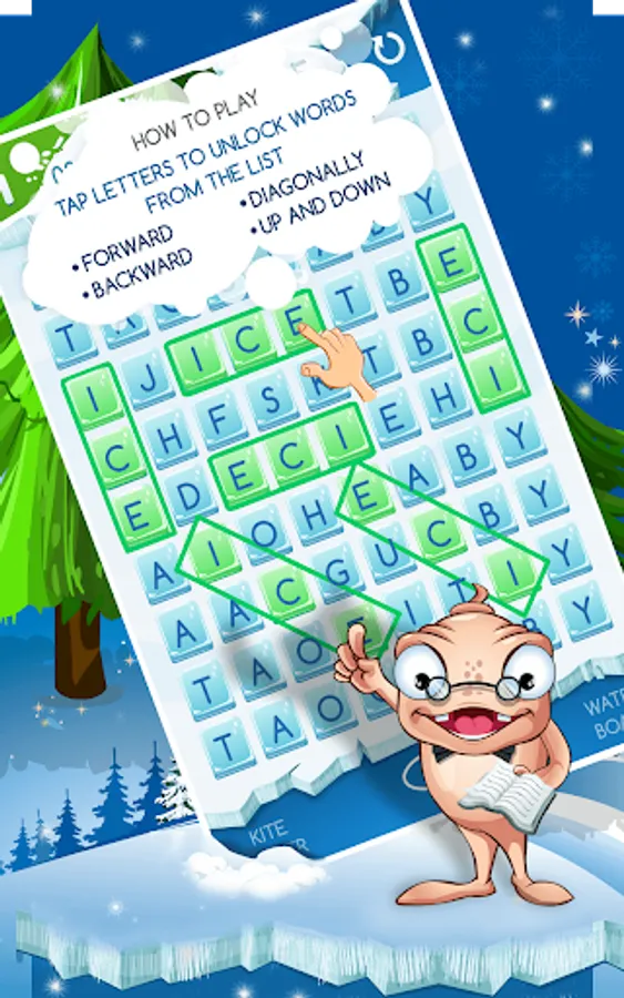 Kids will love to search for hidden words in Word Tap-A-Thon. To help them understand the meaning of the word, there is an animated character called Mr. Wordsmith, who they will simply love. Kids will quickly learn how to correctly spot words, get a deeper understanding of spellings, also learn the word meanings with our dictionary.