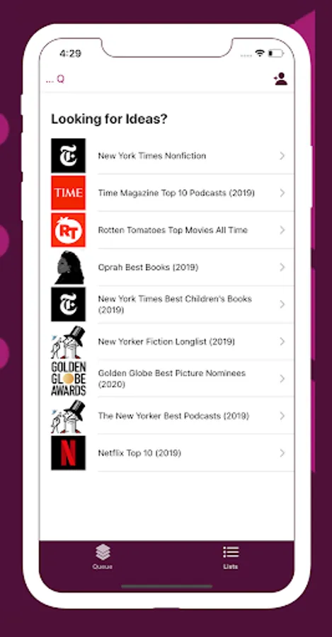 Q the app is a simple way to keep track of all those recommendations you get for movies, tv, podcasts, and books!