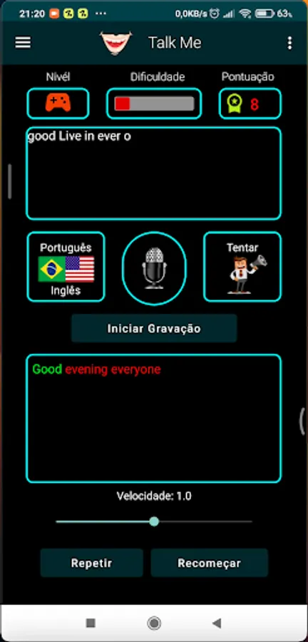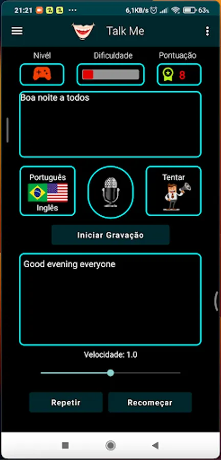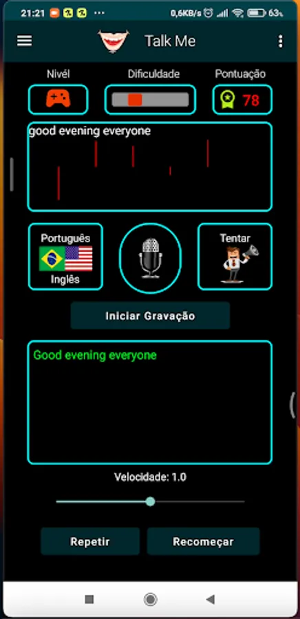 "This one has the purpose of helping in the learning of the English language, with a fun game that adds points to each pronunciation. Encourage your children to learn, play and have fun. It also has a study mode for you who just want to test your pronunciation ."