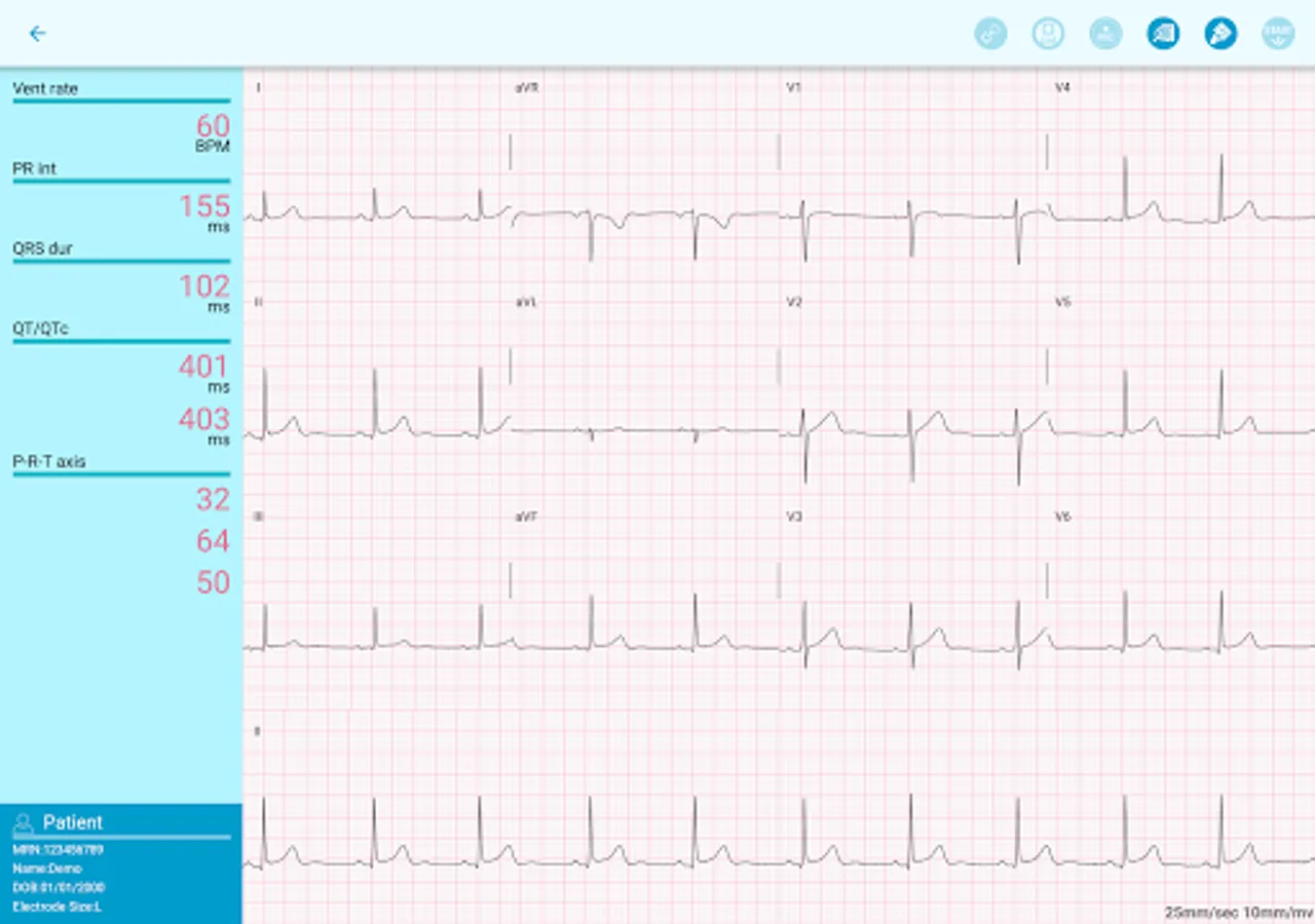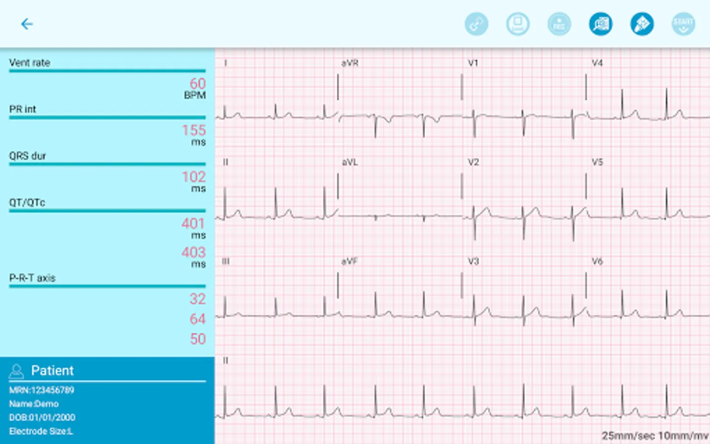 QT ECG™ is designed to be used by a patient to record ECG data and transmit to a physician’s office, hospital or other medical receiving center for review. QT ECG™ connects with mobile devices via Bluetooth, and transmits and displays the full