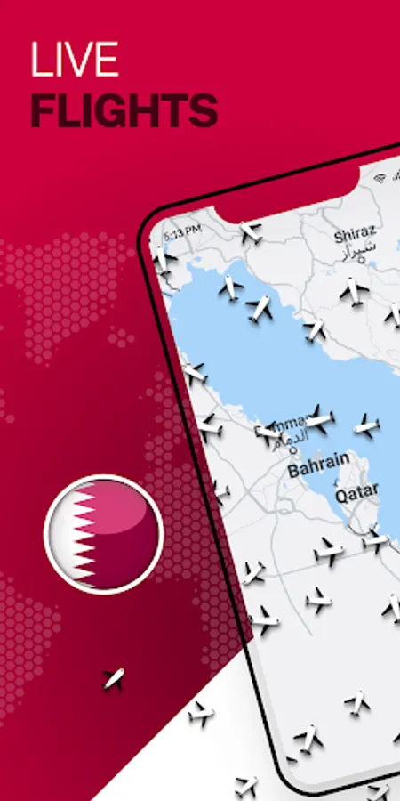 • Live planes with Qatar airways flight tracker.