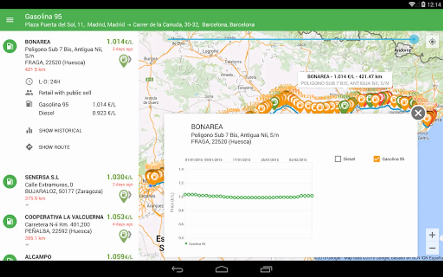 The prices we show are directly taken from the Geoportal of the Ministry of Industry, Trade and Tourism, and we do not have control over them. We make our best efforts to detect the changes in the prices and reflect them in the app as soon as possible. However, the filling stations and the wholesalers are the ones responsible for keeping the data correct and up to date.