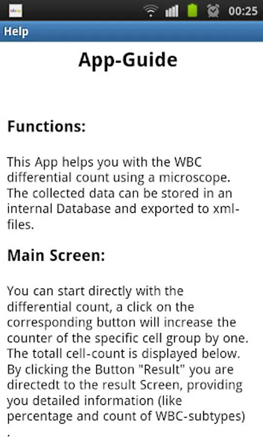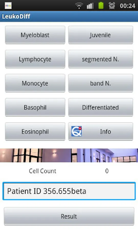 This app helps you manage your WBC differential count. Leukocytes can be easily differentiated and counted. The results are presented absolutely and in percentage of totall cells.