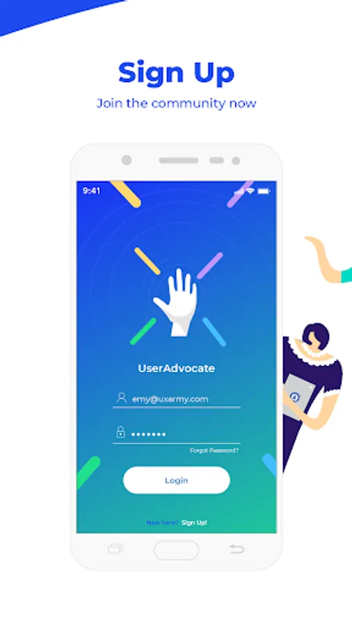 Download the App and sign-up as a User Advocate.