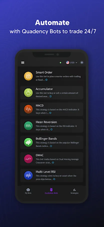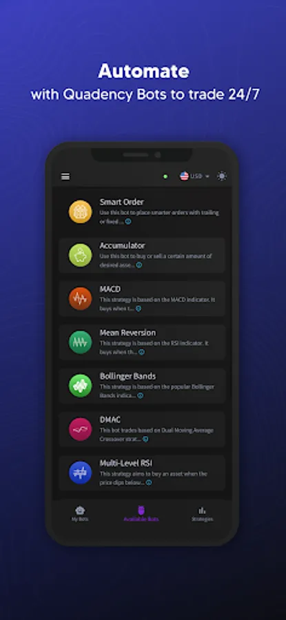 Quadency is a unified cryptocurrency trading and strategy automation platform. We offer a smart trading terminal that makes it easy for users and investors of all levels, like you, to manage your portfolios across all the major crypto exchanges. With real-time portfolio analytics and a growing library of easy-to-configure automation strategies, Quadency provides a seamless and accessible investment experience for every cryptocurrency investor.