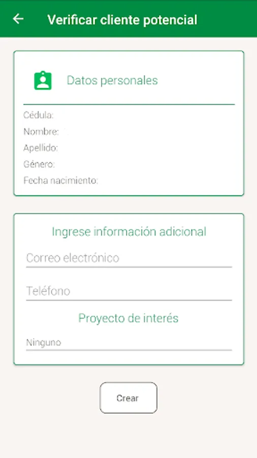 The application will allow you to scan the identity card of people interested in the projects offered by the company, from the data obtained you can verify if it already exists in the CRM or create it as a potential client