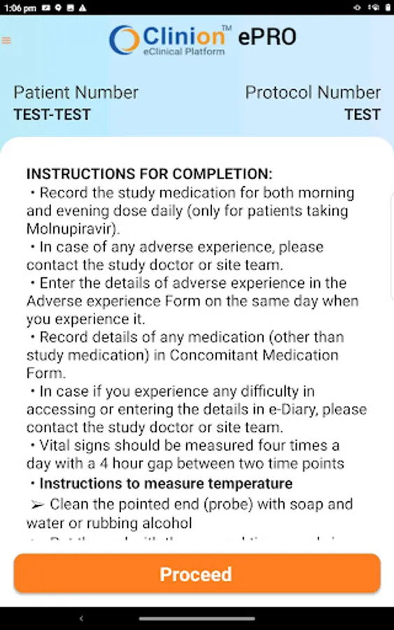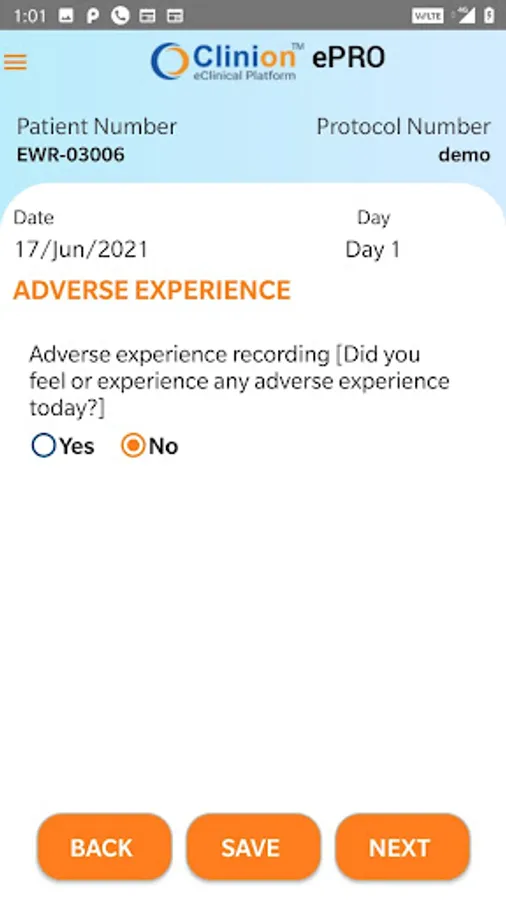 Clinion ePRO / ePRO (e Patient Reported Outcomes) application is a module of Clinion EDC where patient information is captured at source. The patient enters his information into the patient diary App and it is synced and stored into the EDC.