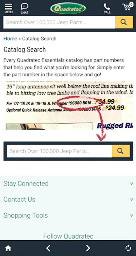 The Quadratec Catalog App takes the Quadratec Essentials Catalog to the next level. Just browse your Quadratec catalog as you normally would. When you see something that interests you, open the app and enter the catalog code in the search box. You will instantly be taken to that product to see additional photos, instructions, videos, special offers and more. Plus, if you're ready to buy, just add the item to your cart and go!