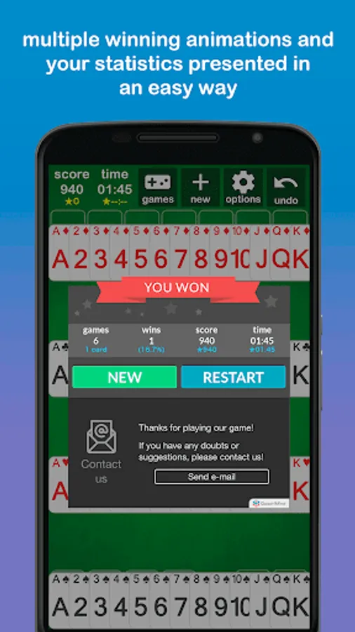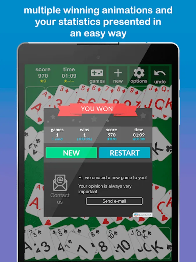 Quadrimind Solitaire has a simple and intuitive interface with a smart gameplay that provides a dynamic game experience even in portable devices.