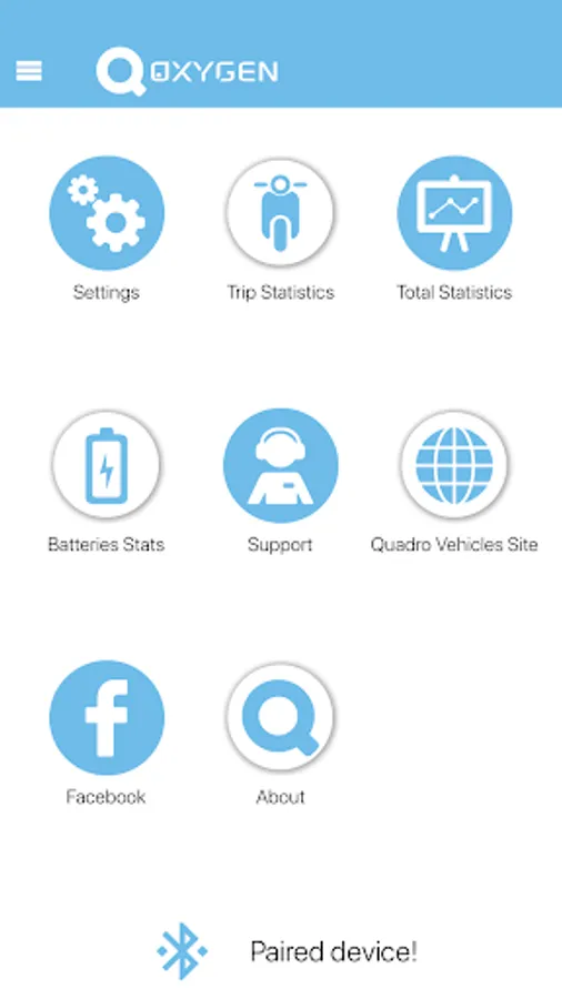 The Oxygen App by Quadro Vehicles is the user interface that allows you, through the bluetooth, to access a series of additional functionalities. Among them are those described below: