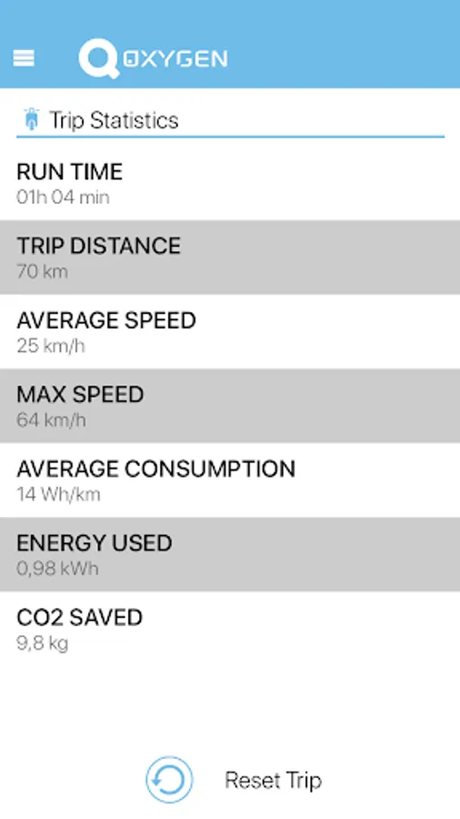 • Consult statistics: distances traveled, average speed, consumption, CO2 saved ...