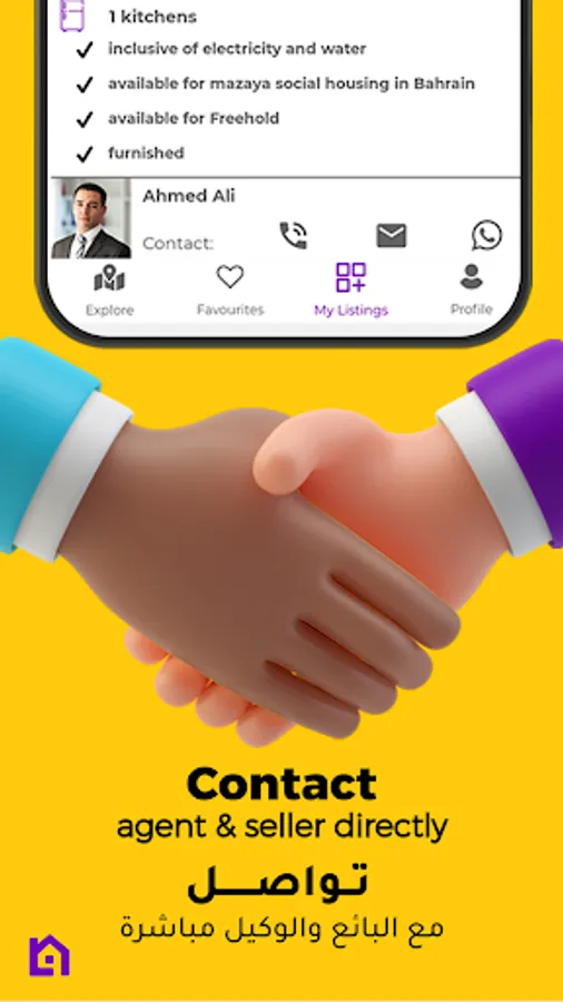 Contact sellers and agents directly by phone, email, and WhatsApp.