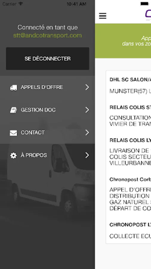 The application Andco Transport allows you to answer calls and offer your donors Order and manage your documentary relationship with them.