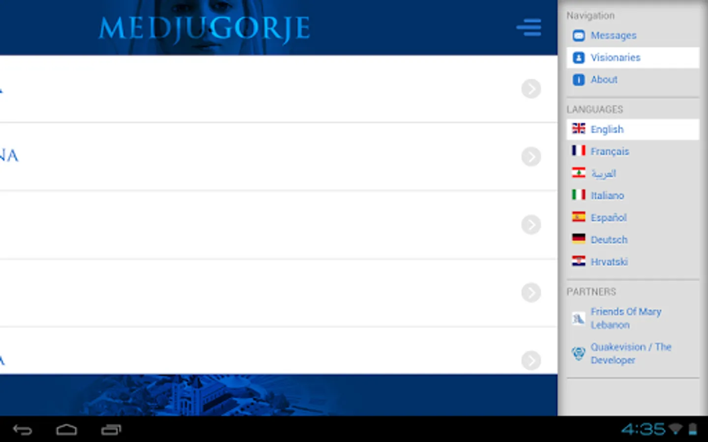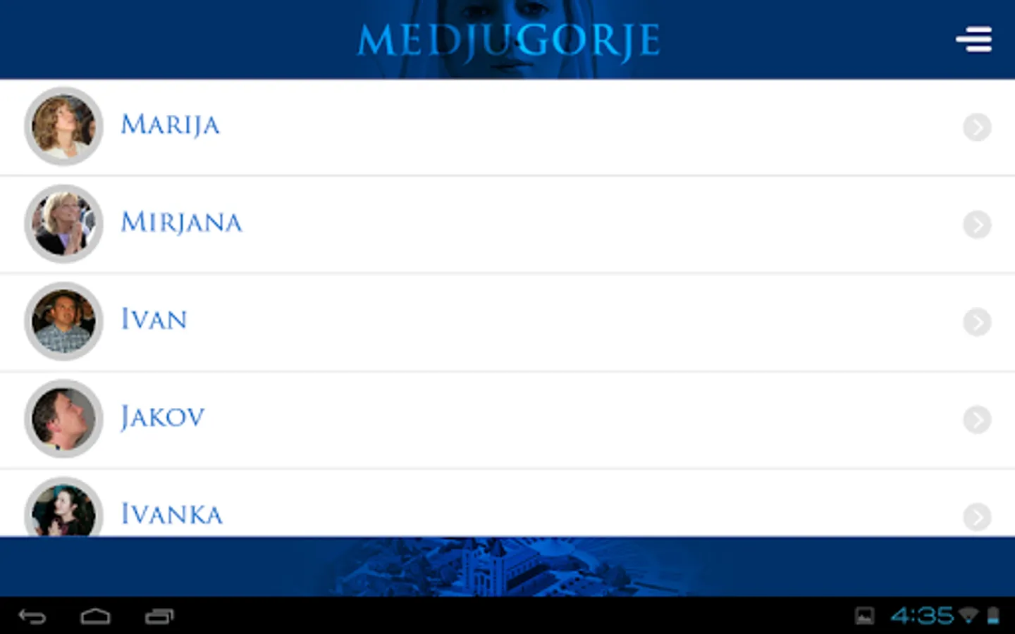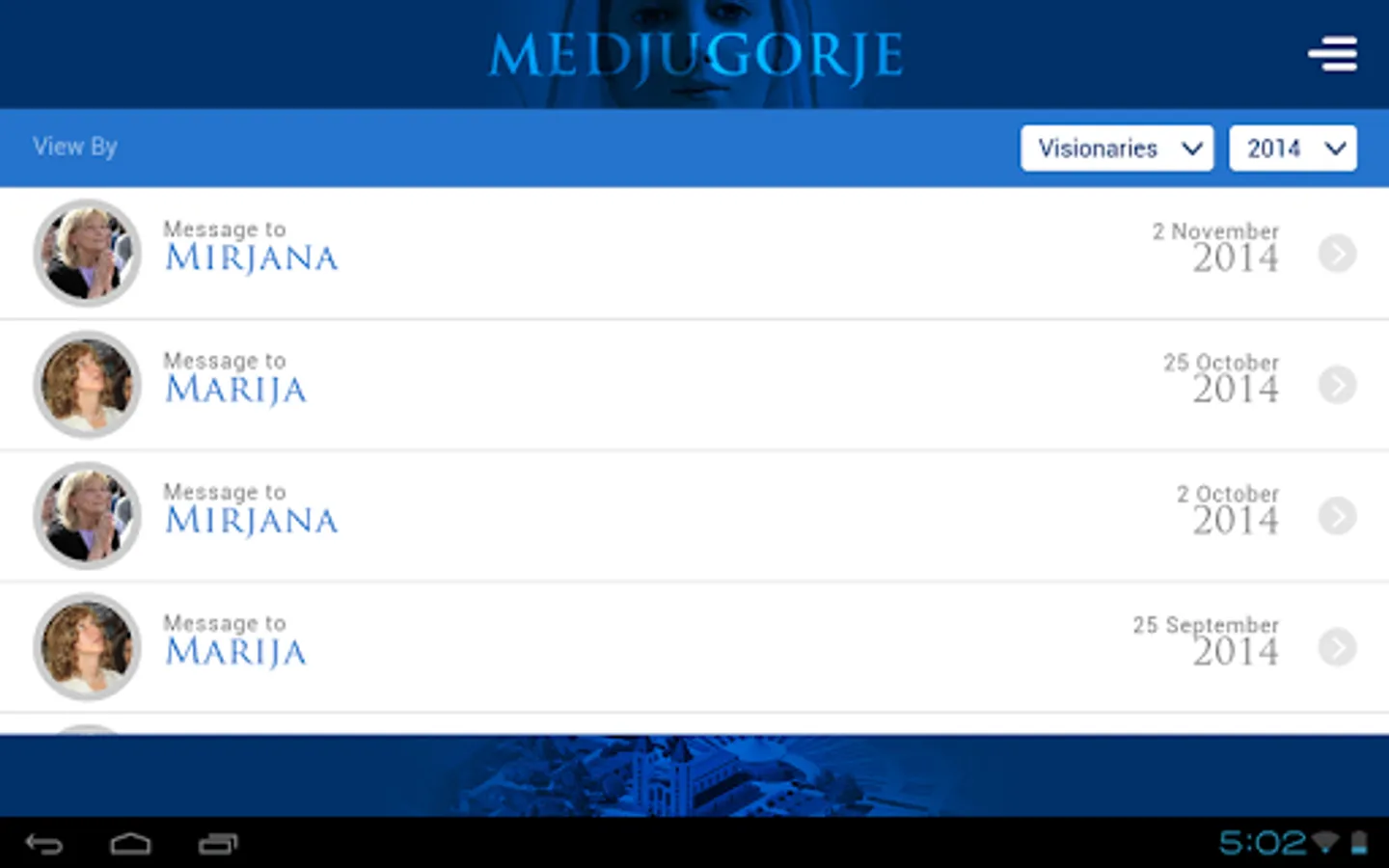 "Medjugorje Messages" is a Multi-language application that offers possibility of publishing Our Lady’s messages from the visionaries themselves in 7 different languages. In addition it contains archived message since early apparitions 1981 and summarized biographies about the visionaries.