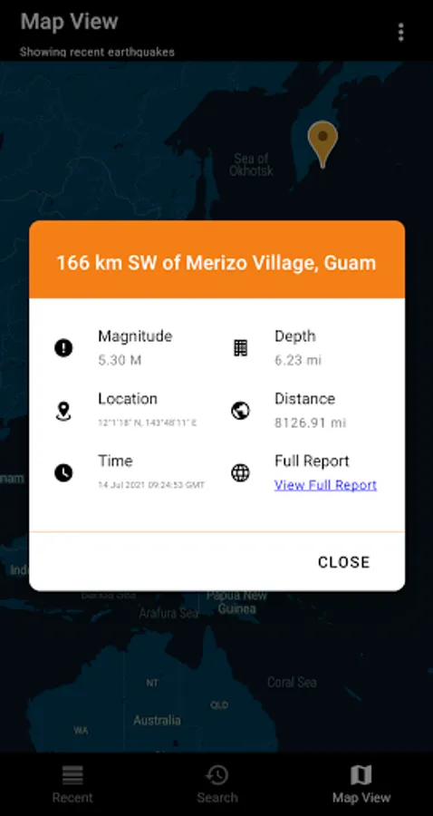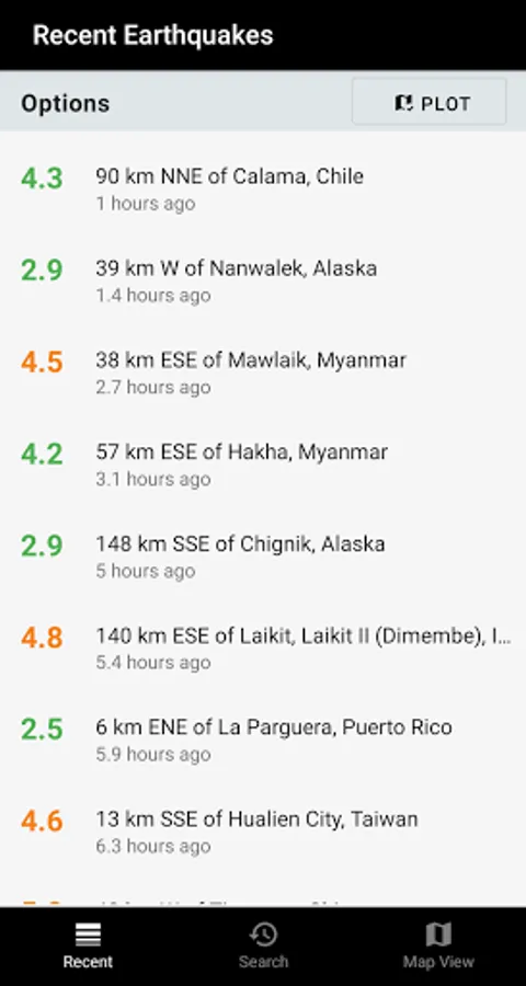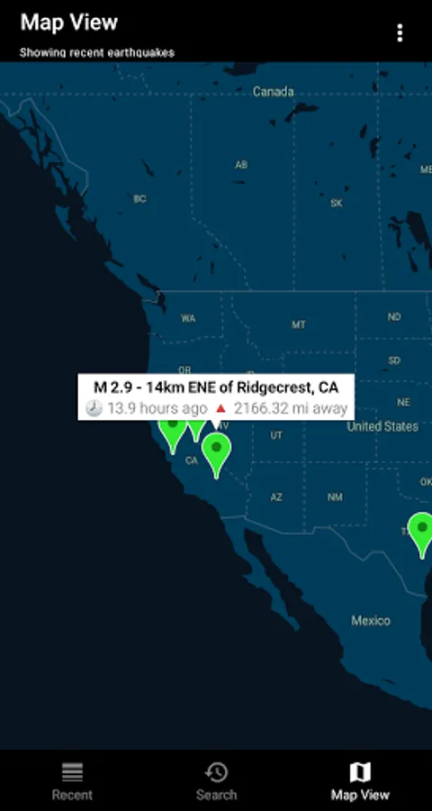 Quakey currently provides US earthquake reports of magnitude 2.5+ and worldwide earthquake reports of magnitude 4.5+.