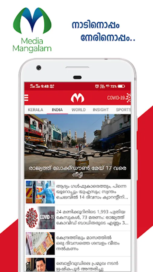 Media Mangalam is a multi media platform with a difference, From news to entertainment, all under one roof using the state of art digital technology. Sincere Fast and Reliable news with utmost user friendly. Now you can read all the Kerala's latest news in your Mobile in Malayalam covering Latest Kerala News, Politics, Movie News, Movie Reviews, Sports News, Entertainment News, Lifestyle, International News, Malayalam News, etc. It also cover news from across the globe covering World News, India News, Kerala News, Science and Technology, Movies, Health, News Specials, Travel, Agriculture, NRI News, Books, Women's affairs, Sports, Business etc.