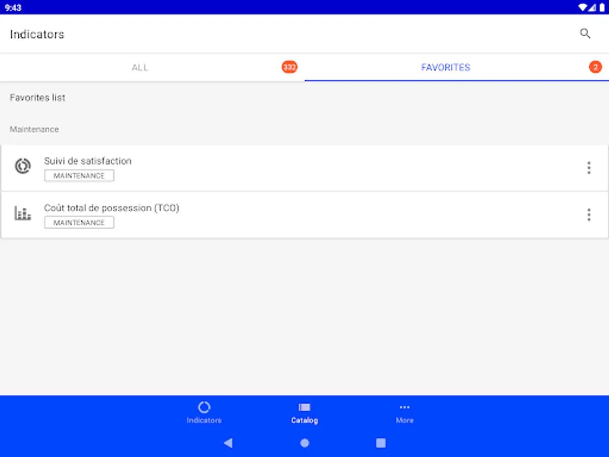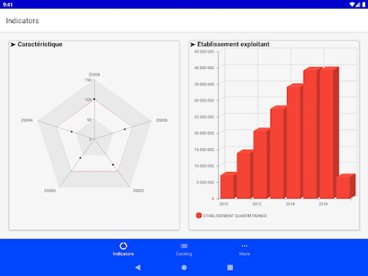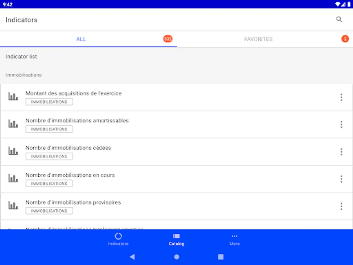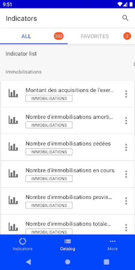This mobile application can be used to find and display the indicators of the Cegid XRP Ultimate product. Favorites are chosen to see the most relevant indicators as soon as the application is opened.
